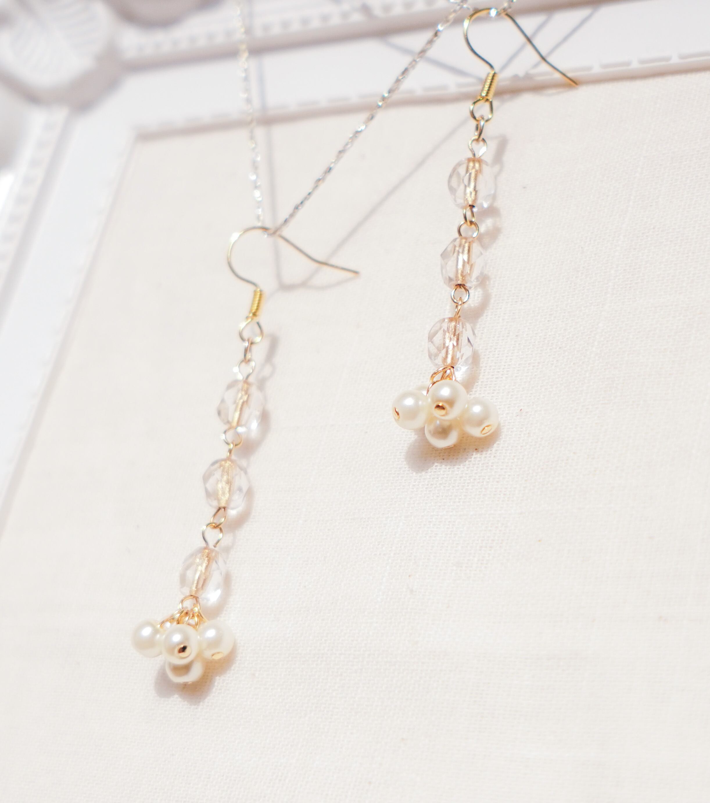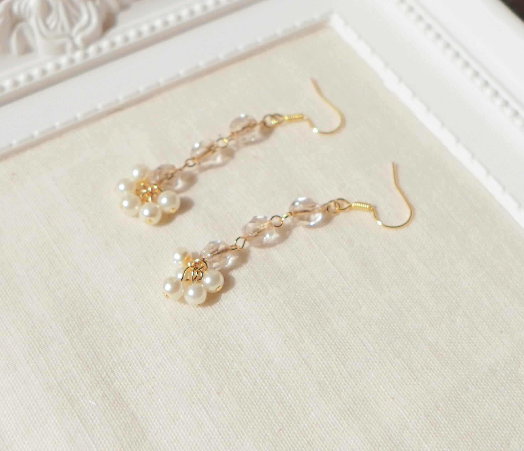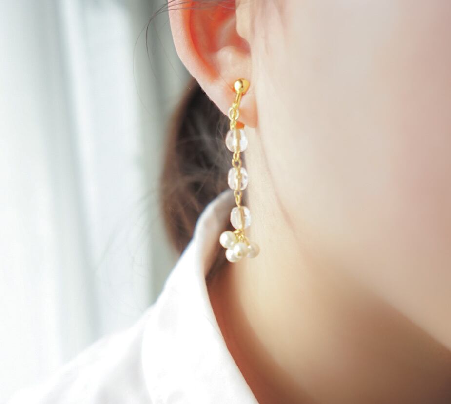 透明感のあるピアスなのでどんな場面でもつけやすい仕様です。イヤリングご希望の方も付け替え可能ですので、購入の際追記お願いします。