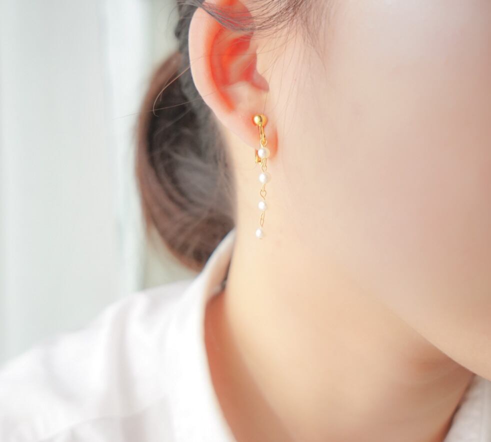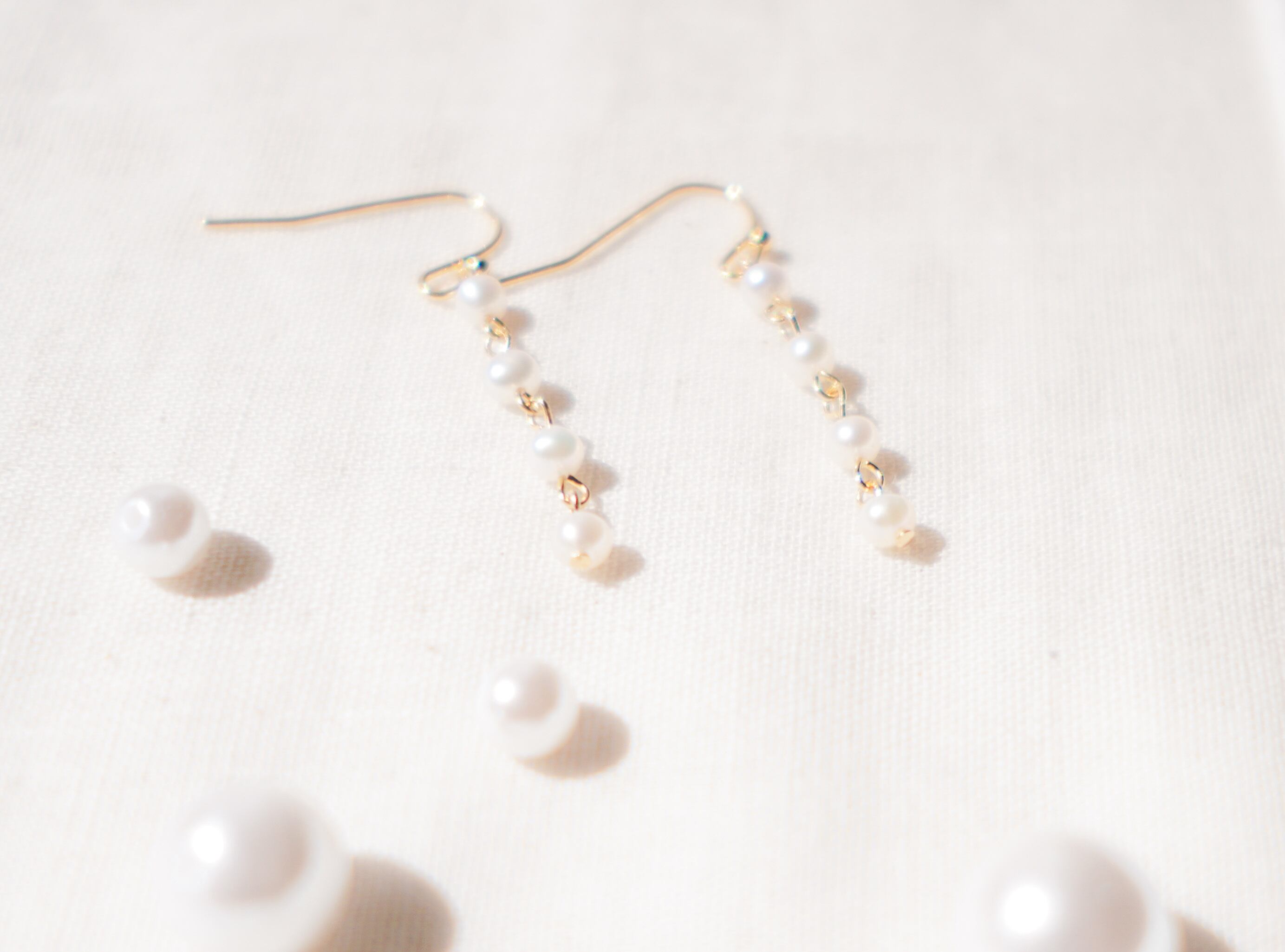 淡水パールをチェーンのようにつなげました。輝きに存在感はありますが、シンプルな形で高級感溢れる形になってます。