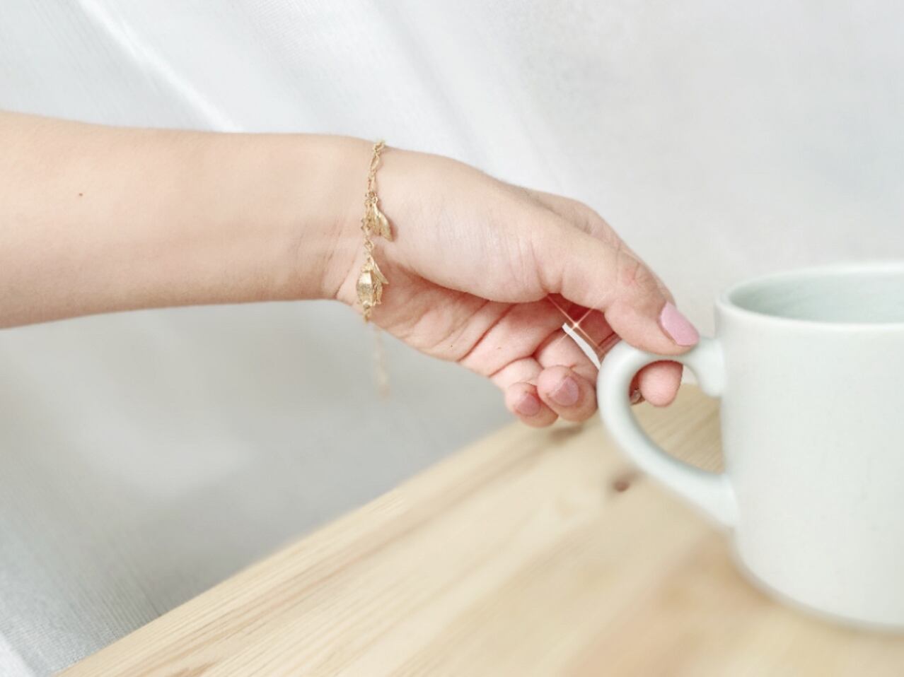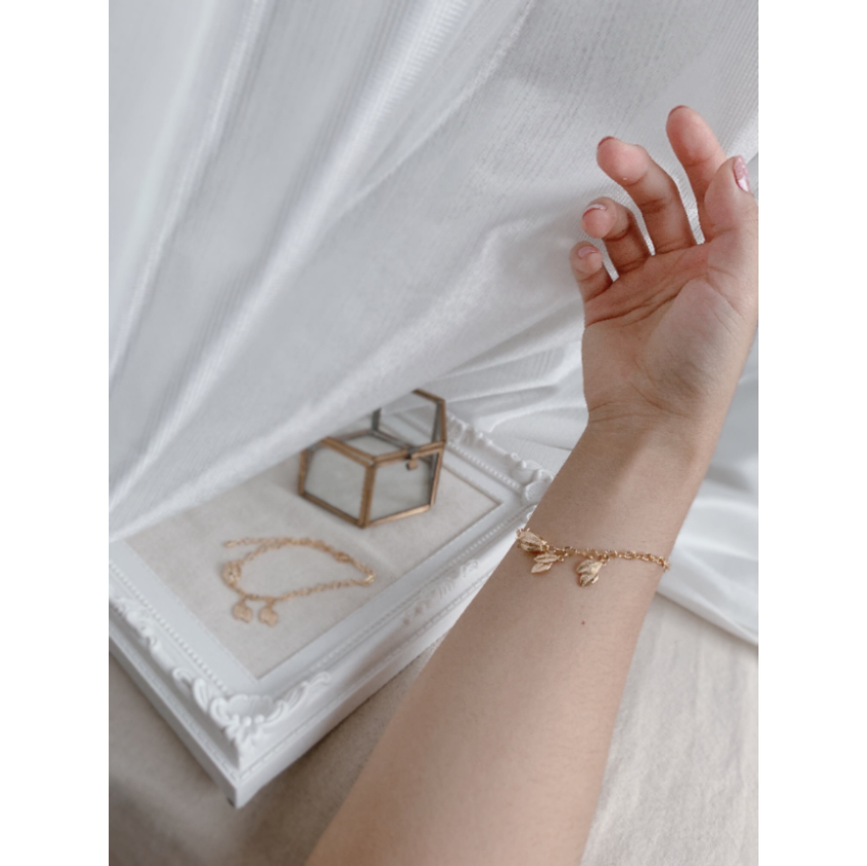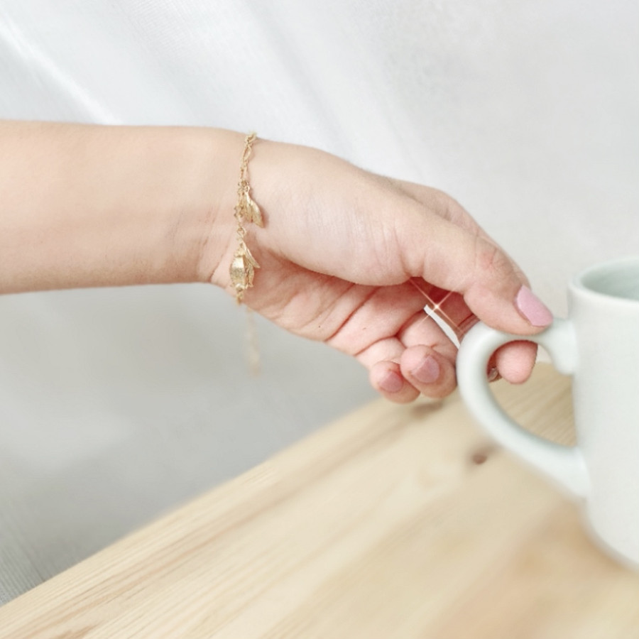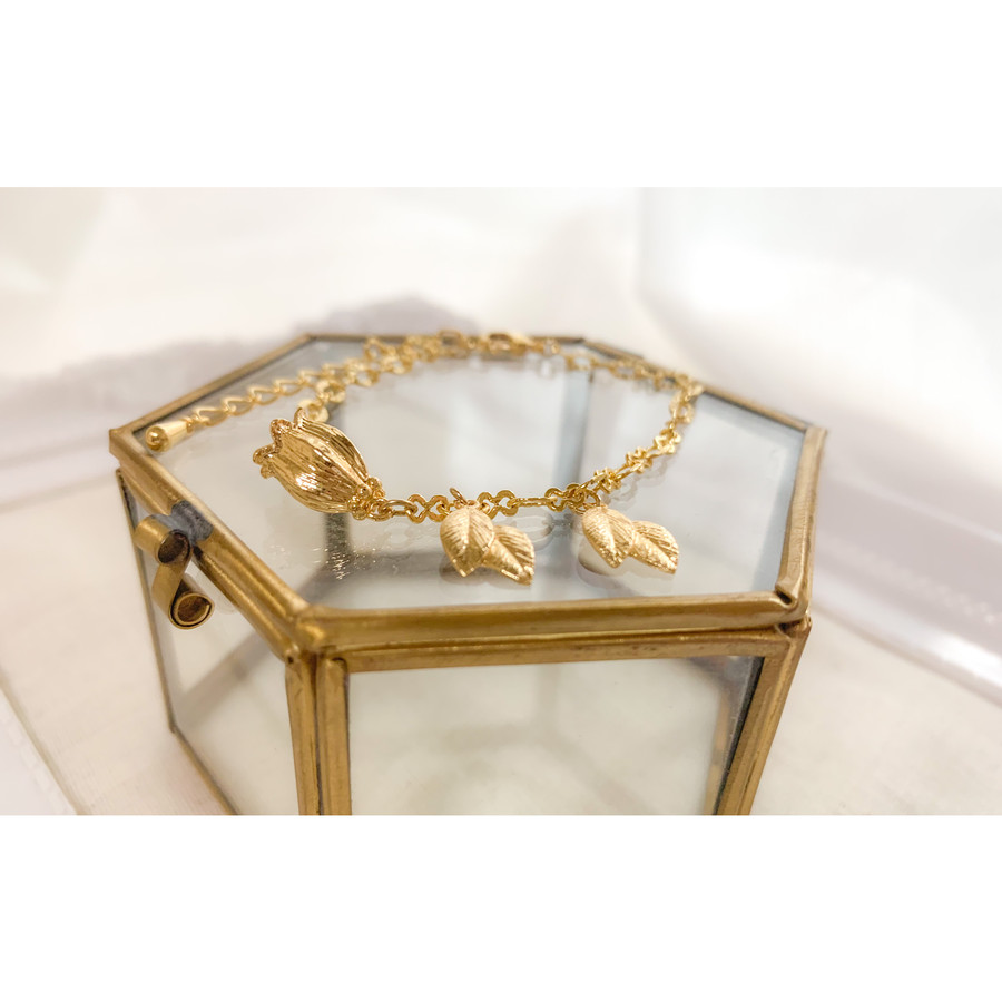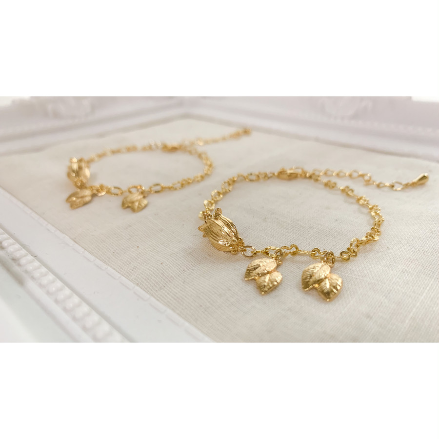 お花と葉っぱがモチーフです、チェーンキラキラしていて手元を可愛く演出してくれます。