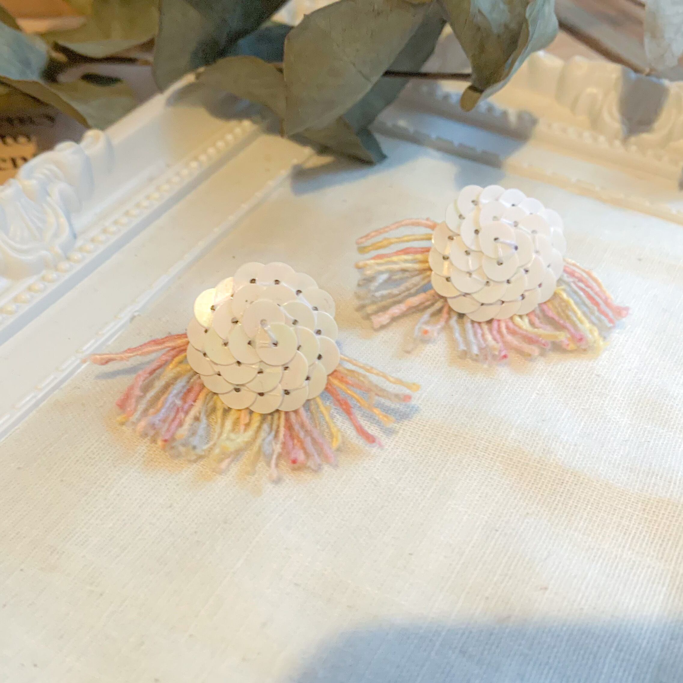 大きなサイズですが、ホワイトカラーで目立ちすぎないカラーで合わせやすいアクセサリーです◎