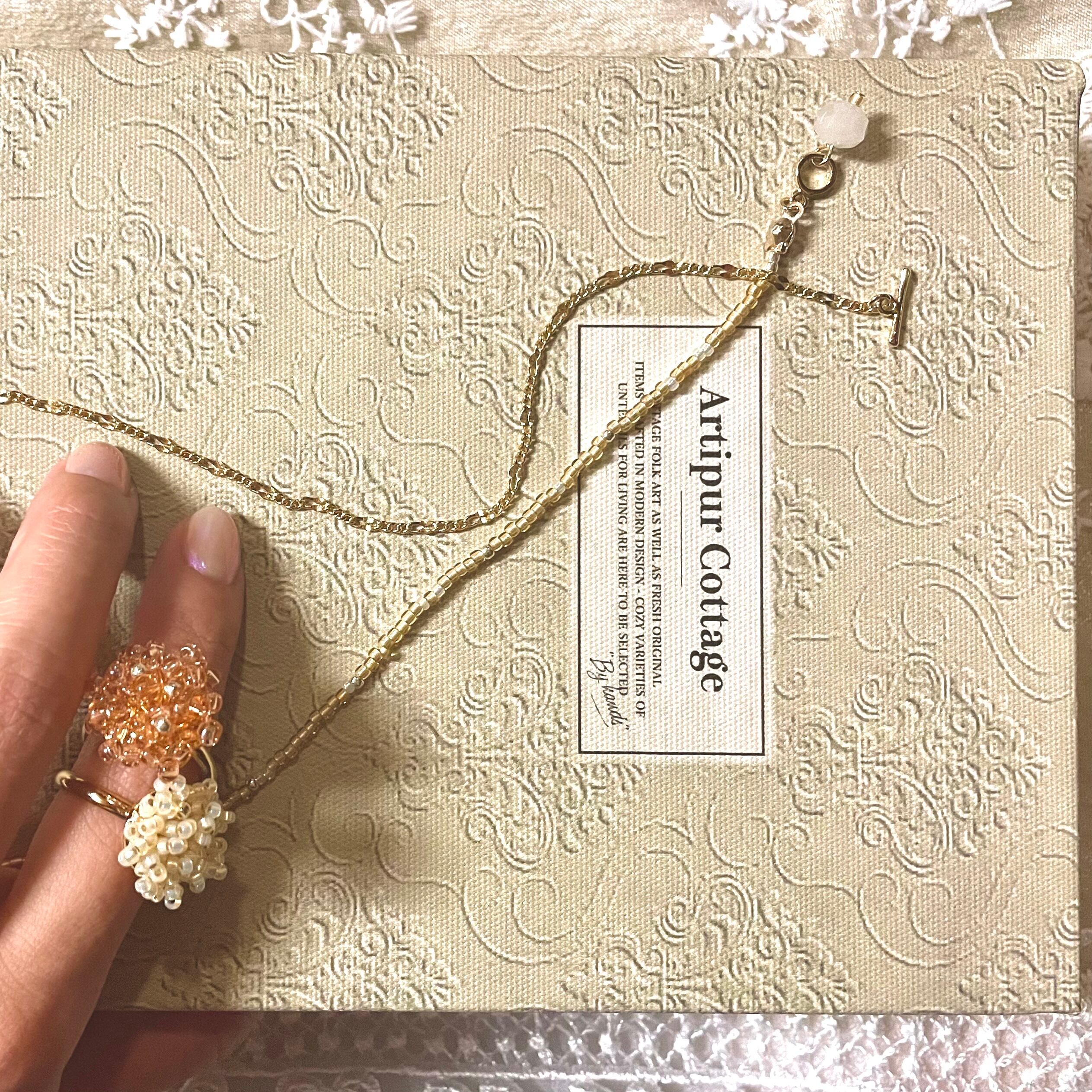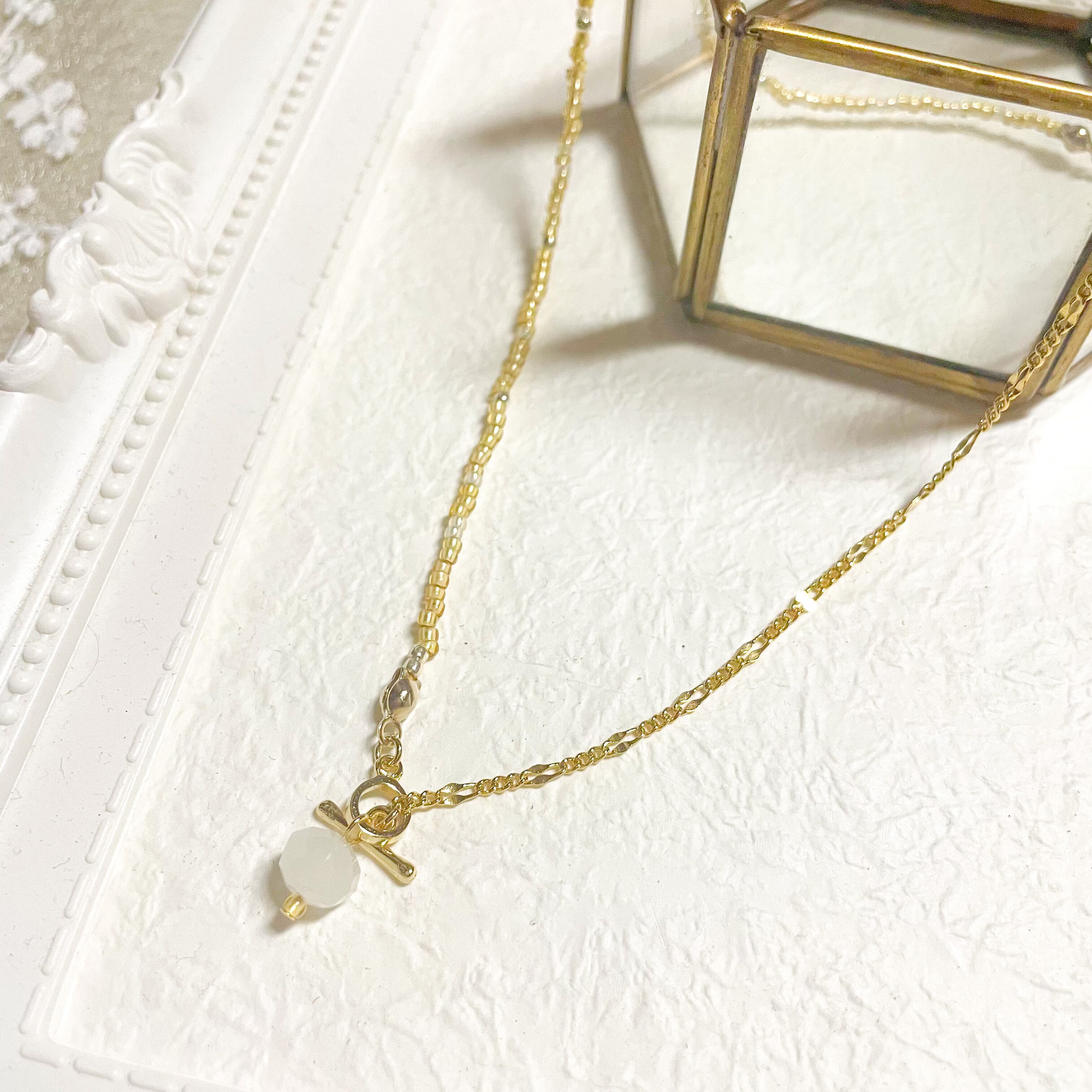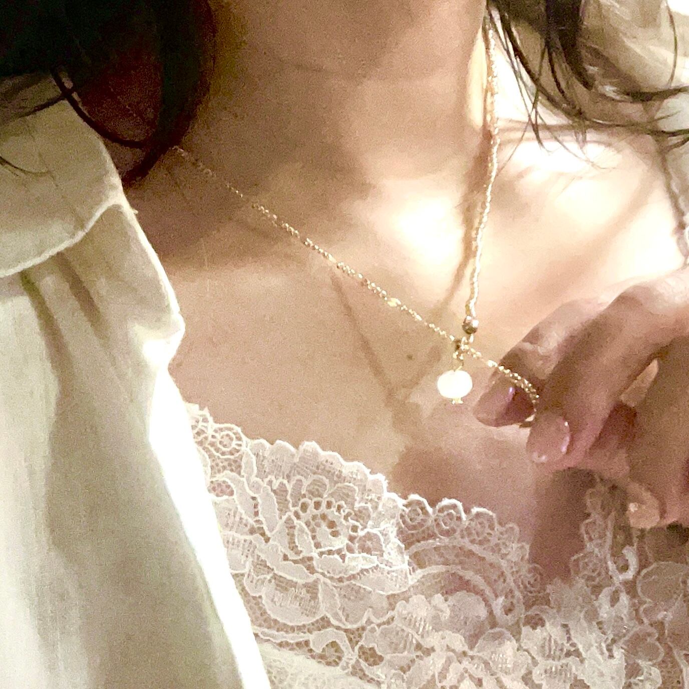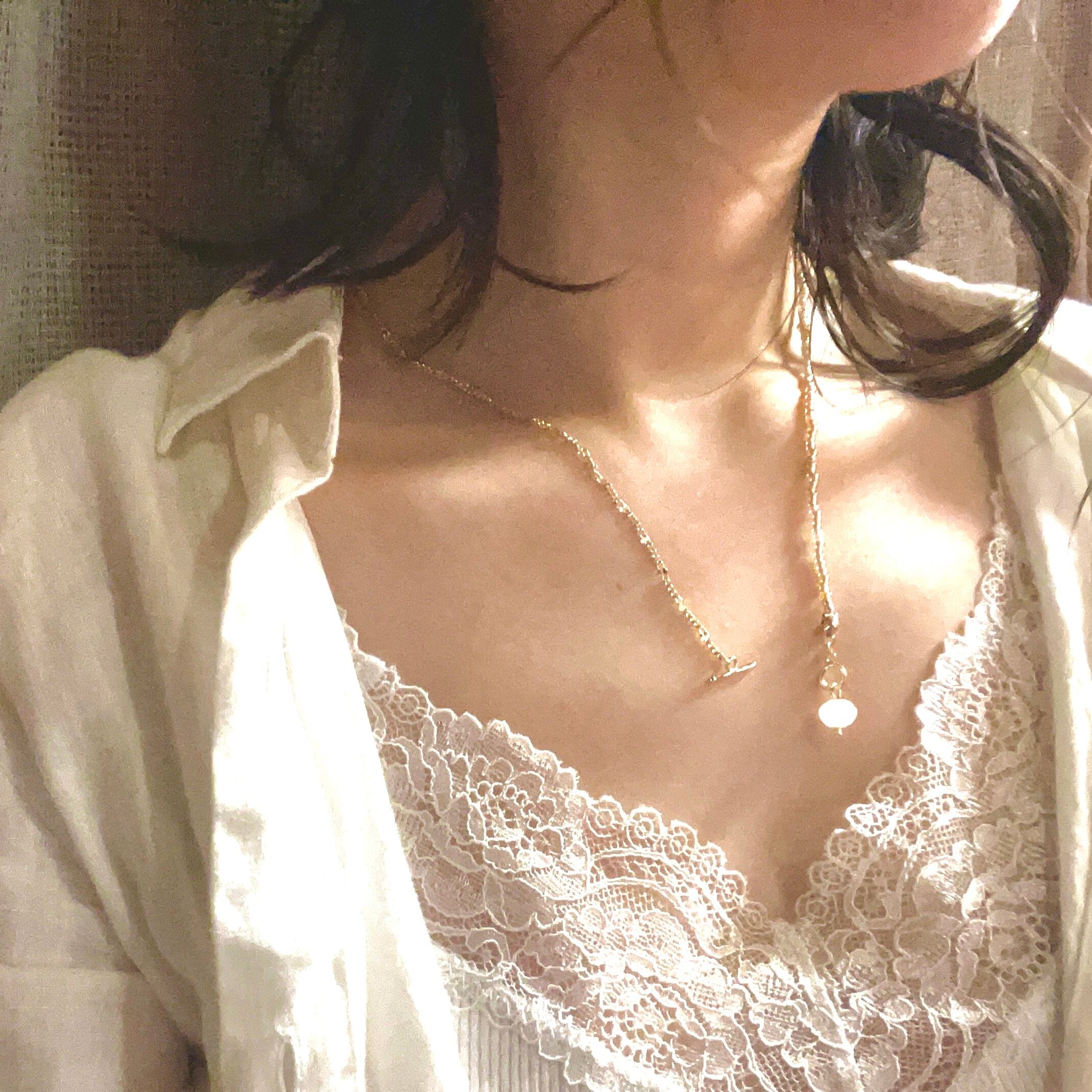マンテルタイプのネックレスにワンポイントでシアーホワイトのビーズを合わせました。