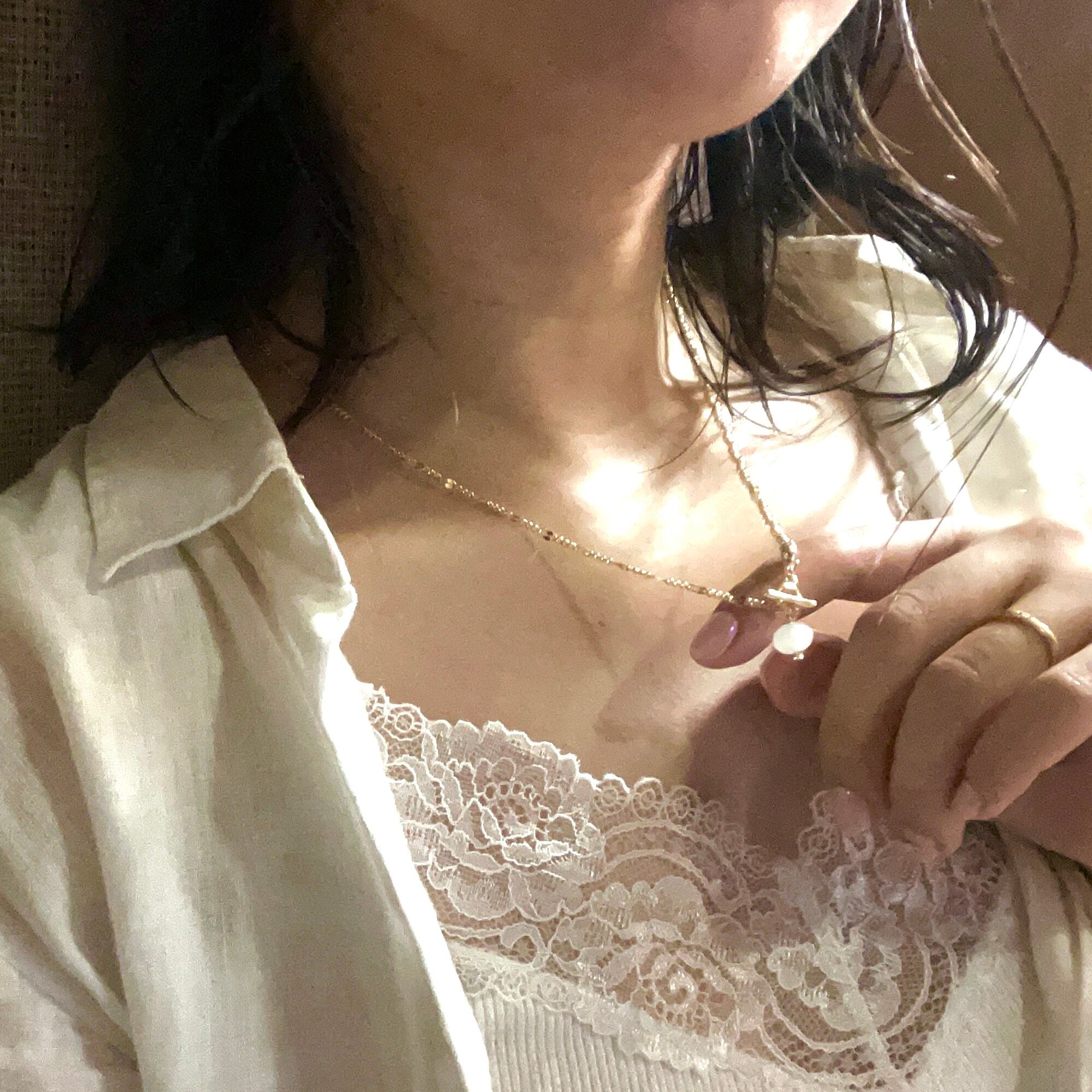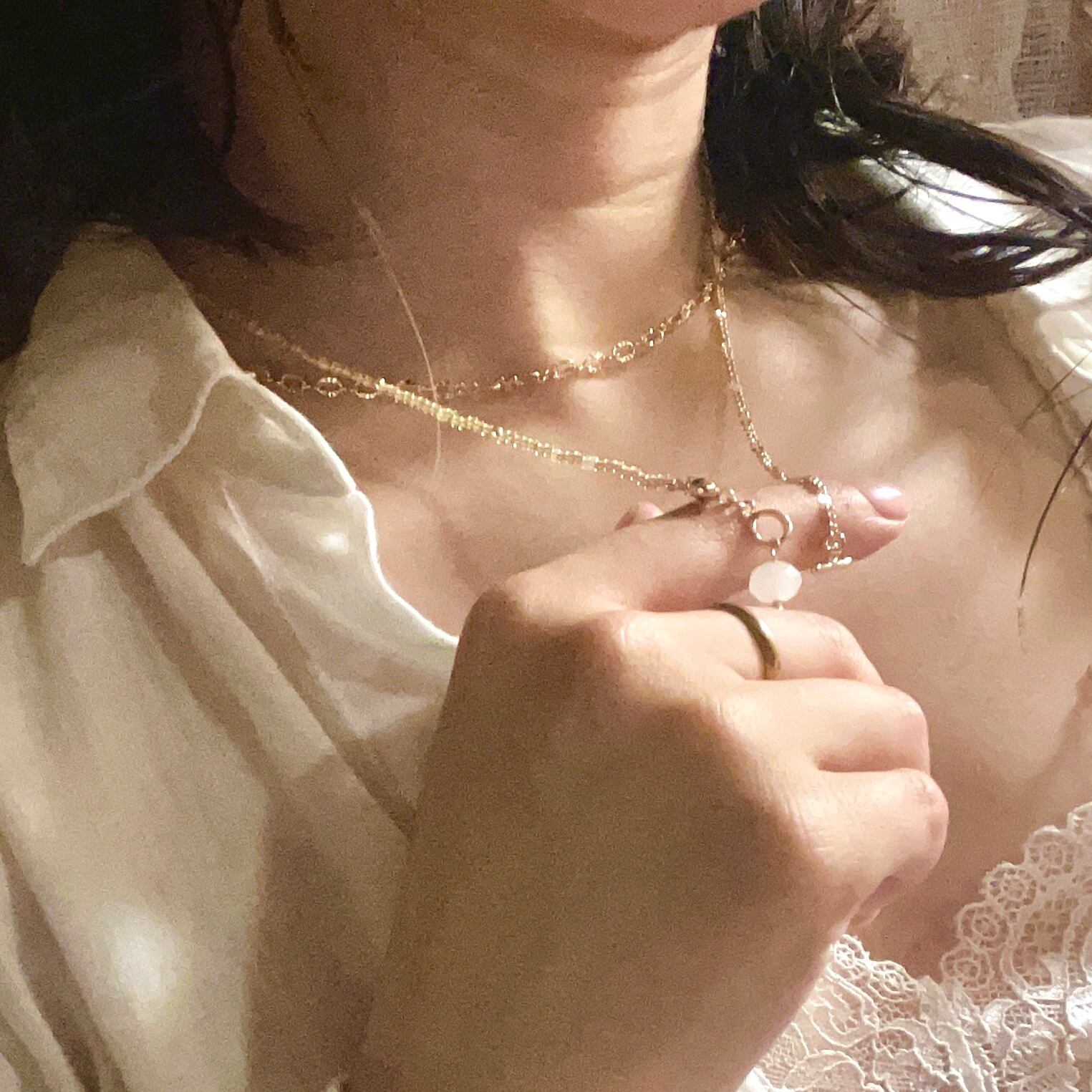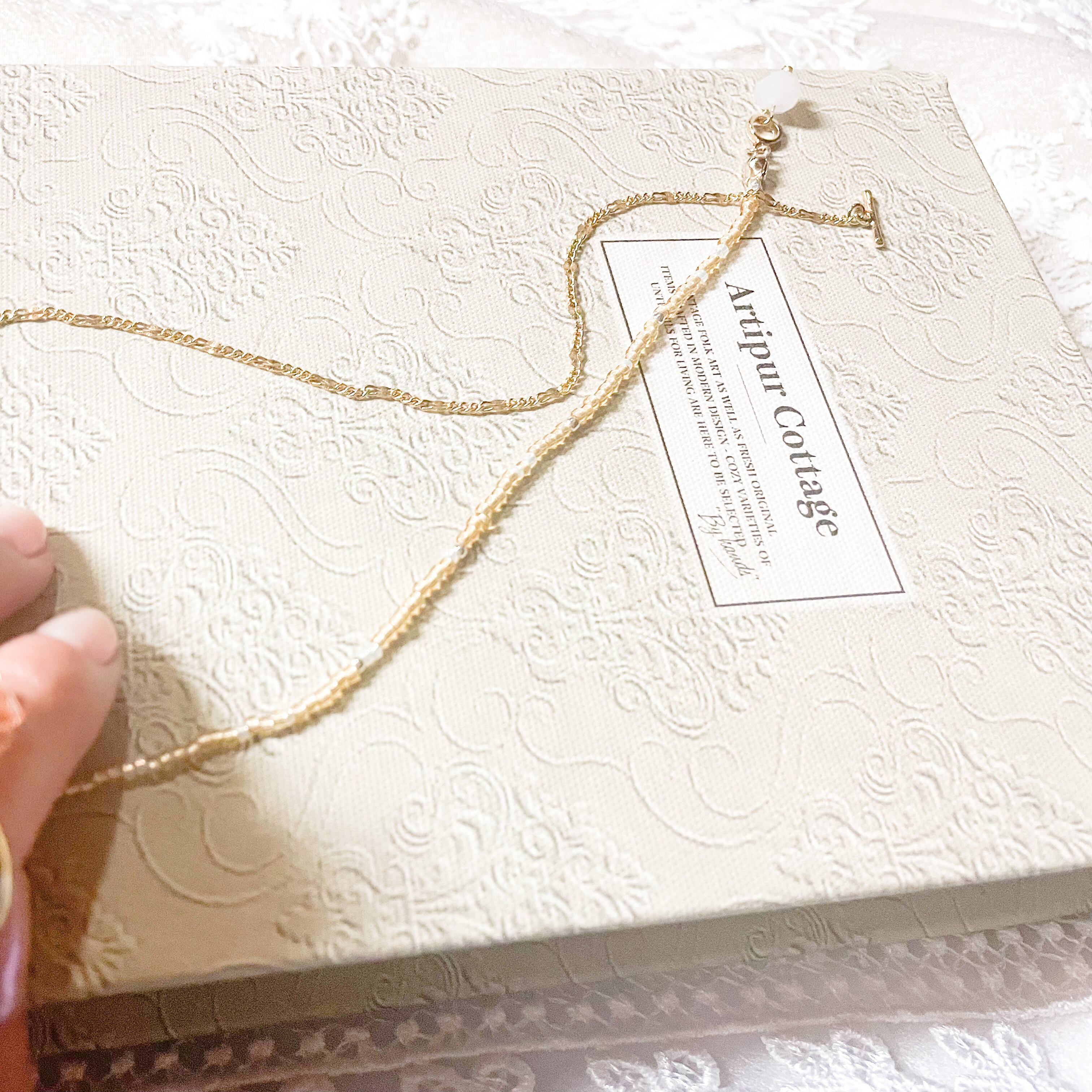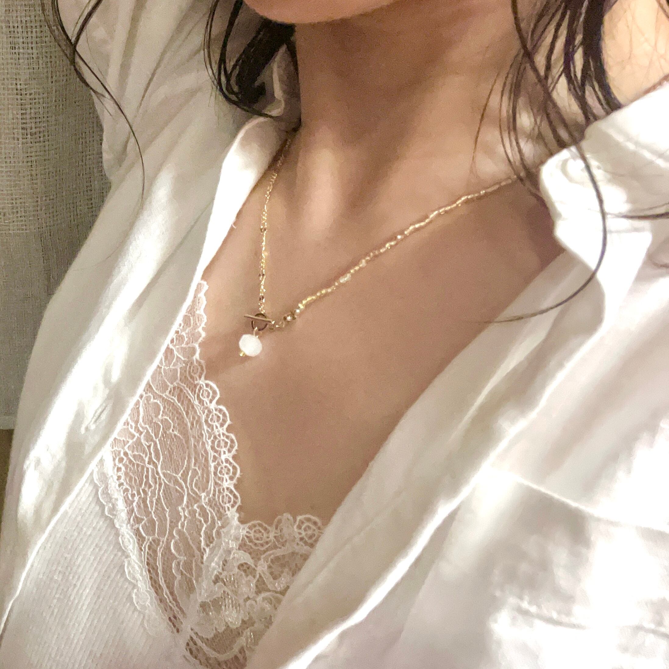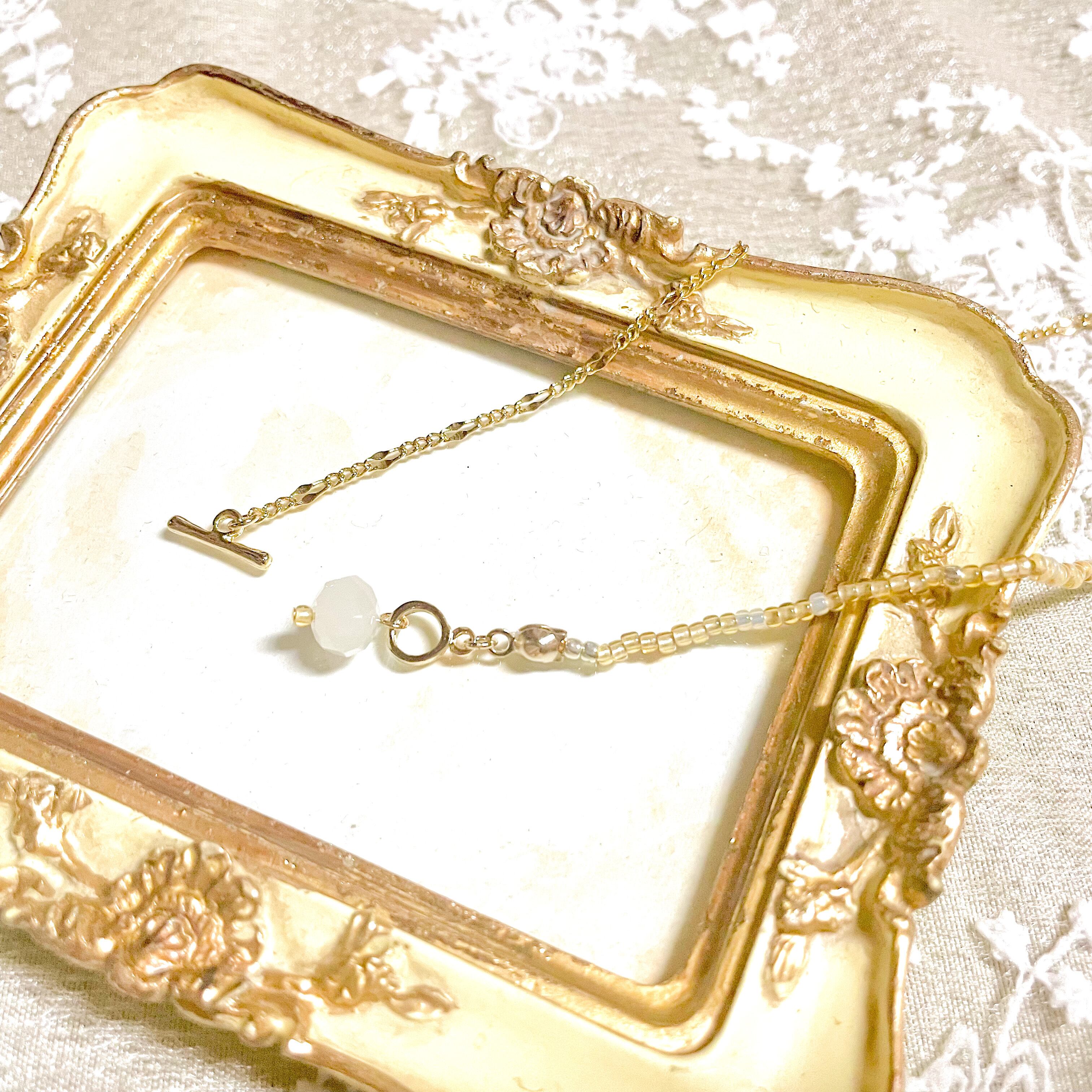 マンテルタイプのネックレスにワンポイントでシアーホワイトのビーズを合わせました。