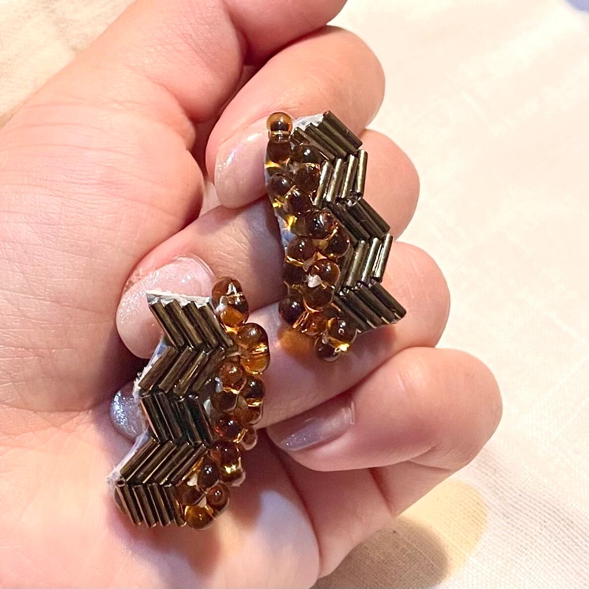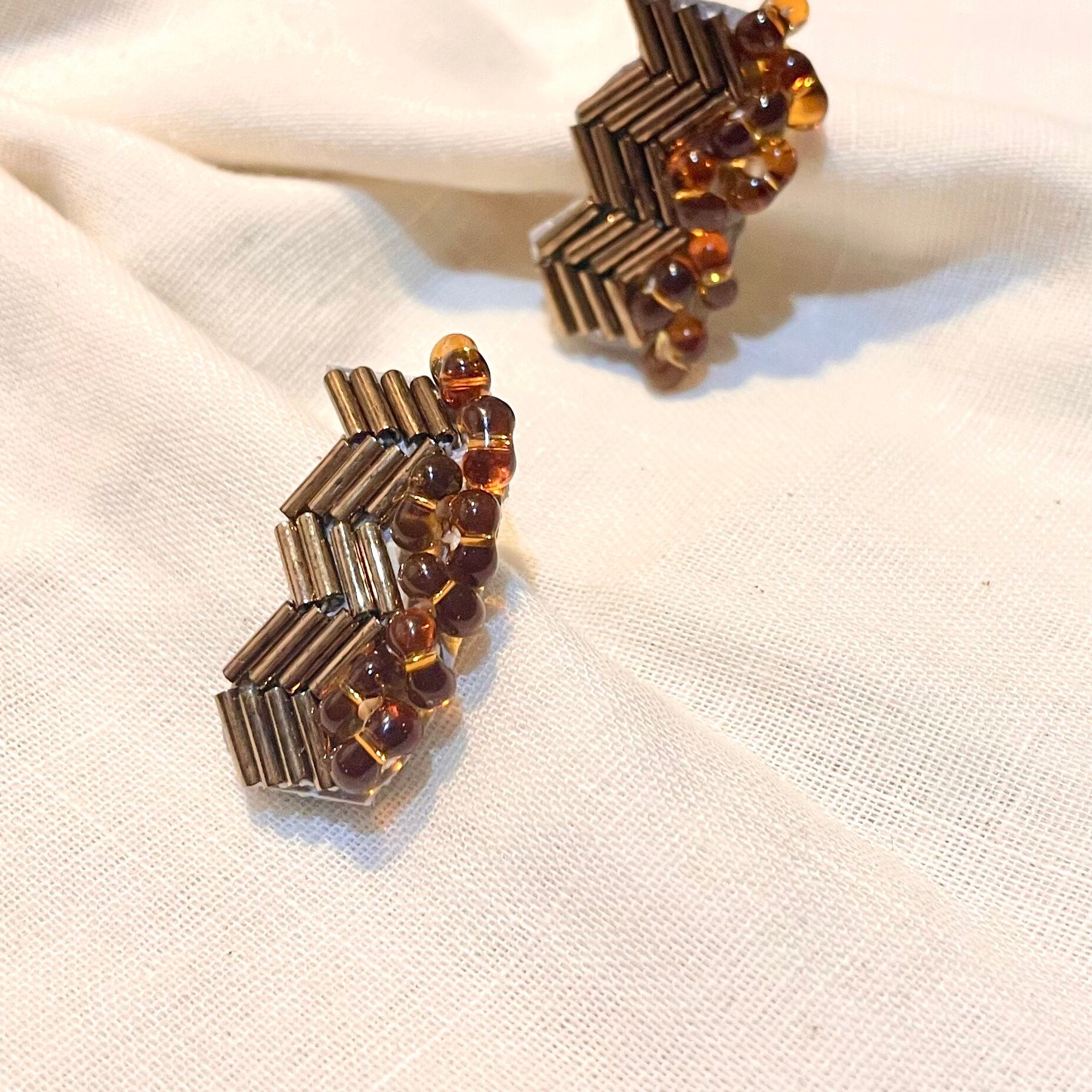 2つの変わったテクスチャーを合わせたピアス、イヤリングです。